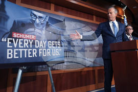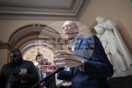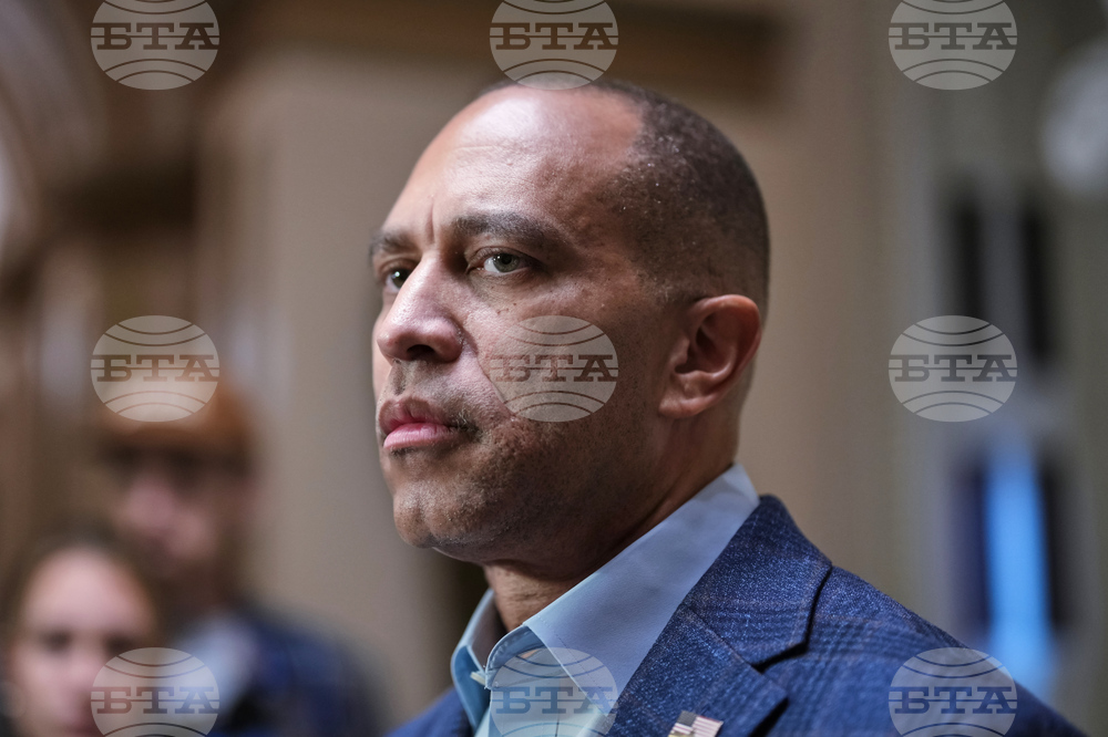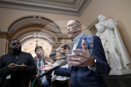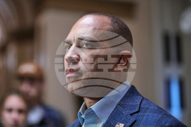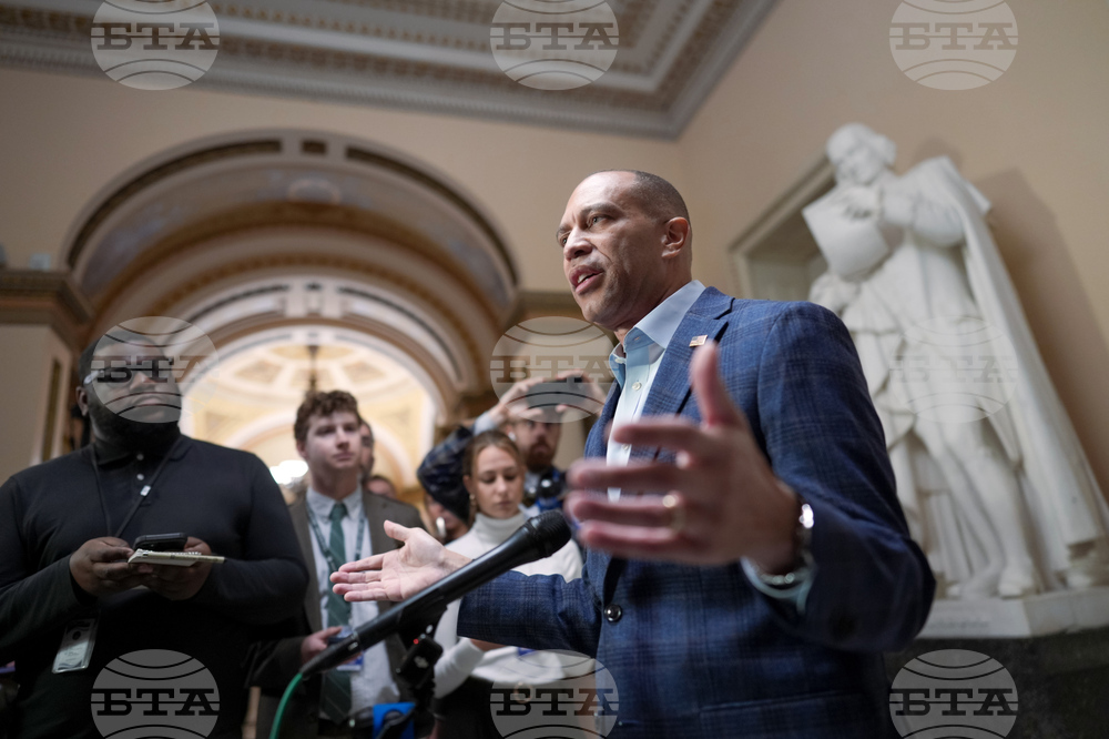 House Minority Leader Hakeem Jeffries, D-N.Y., speaks to reporters as a government shutdown begins its tenth day, in Washington, Friday, Oct. 10, 2025. (AP Photo/J. Scott Applewhite)