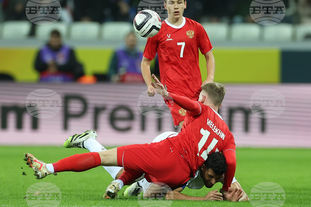 Russia's Ilya Vanakhia controls the ball during a friendly soccer match between Russia and Iran at Volgograd Arena in Volgograd, Russia, Friday, Oct. 10, 2025. (AP Photo)