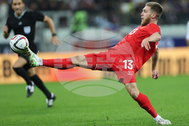 Russia's Ivan Sergeev controls the ball during an international friendly soccer match between Russia and Iran at Volgograd Arena in Volgograd, Russia, Friday, Oct. 10, 2025. (AP Photo)