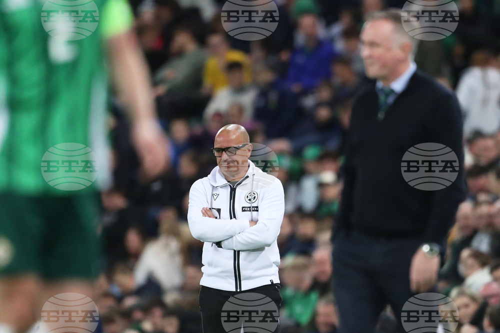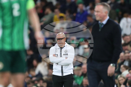 Northern Ireland's head coach Michael O'Neill gives instructions from the side line during a World Cup 2026 group A qualifying soccer match between Northern Ireland and Slovakia at Windsor Park stadium, in Belfast, Northern Ireland, Friday, Oct. 10, 2025. (AP Photo/Peter Morrison)