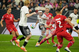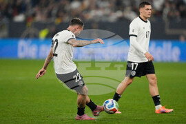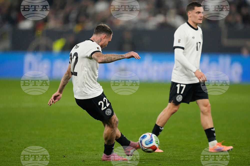 Germany's David Raum scores the opening goal during the World Cup 2026 group A qualifying soccer match between Germany and Luxembourg in Sinsheim, Germany, Friday, Oct. 10, 2025. (AP Photo/Michael Probst)