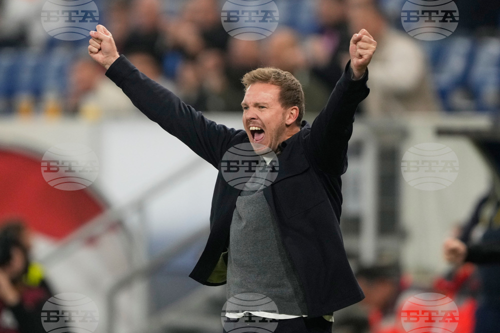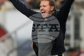 Germany's head coach Julian Nagelsmann celebrates after his team scored during the World Cup 2026 group A qualifying soccer match between Germany and Luxembourg in Sinsheim, Germany, Friday, Oct. 10, 2025. (AP Photo/Michael Probst)