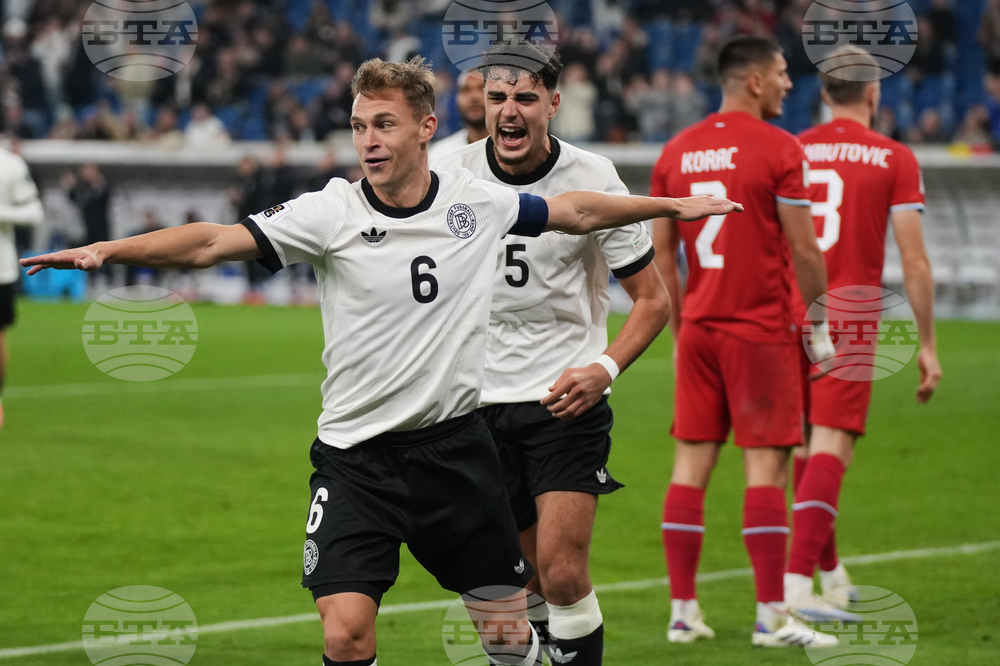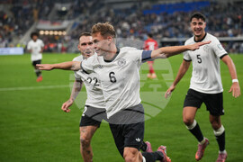 Germany's Joshua Kimmich celebrates after he scored his side's 4th goal during the World Cup 2026 group A qualifying soccer match between Germany and Luxembourg in Sinsheim, Germany, Friday, Oct. 10, 2025. (AP Photo/Michael Probst)