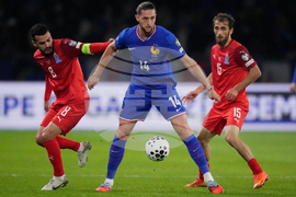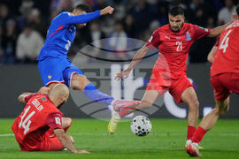 Azerbaijan players pose before a World Cup 2026 Group D qualifying soccer match between France and Azerbaijan in Paris, France, on Friday, Oct. 10, 2025. (AP Photo/Michel Euler)