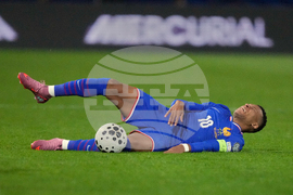 France's Kylian Mbappe sits injured during a World Cup 2026 Group D qualifying soccer match between France and Azerbaijan in Paris, France, on Friday, Oct. 10, 2025. (AP Photo/Michel Euler)