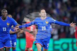 France's Florian Thauvin celebrates after scoring during a World Cup 2026 Group D qualifying soccer match between France and Azerbaijan in Paris, France, on Friday, Oct. 10, 2025. (AP Photo/Michel Euler)