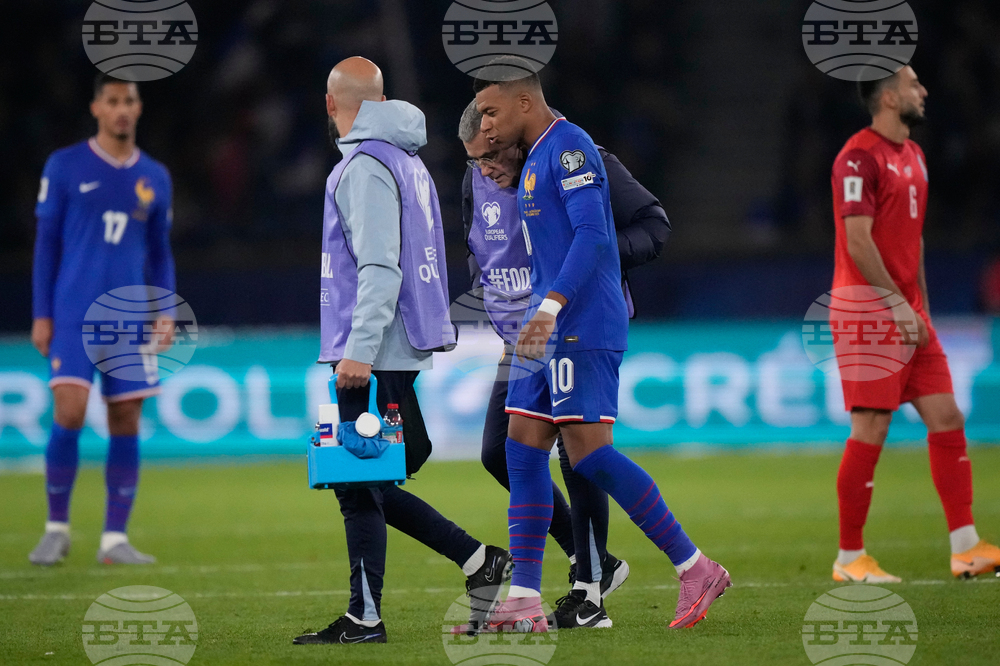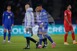 France's Kylian Mbappe is substituted after getting injured during a World Cup 2026 Group D qualifying soccer match between France and Azerbaijan in Paris, France, on Friday, Oct. 10, 2025. (AP Photo/Michel Euler)
