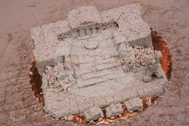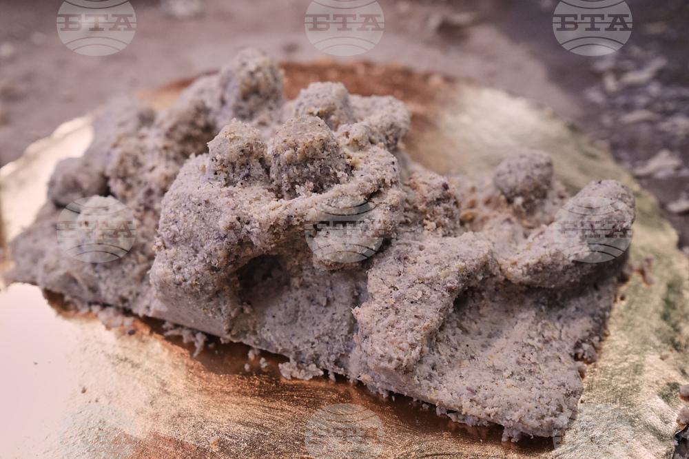 Shown is Patrick Moser's entry "Mush Push" during the Scrapple Sculpting Contest at the Reading Terminal Market in Philadelphia, Friday, Oct. 10, 2025. (AP Photo/Matt Rourke)
