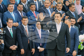 Prime Minister Mohammed Shia al-Sudani arrives to his political block campaign rally before the parliamentary elections in Karbala, Iraq, Friday, Oct. 10, 2025. (AP Photo/Anmar Khalil)