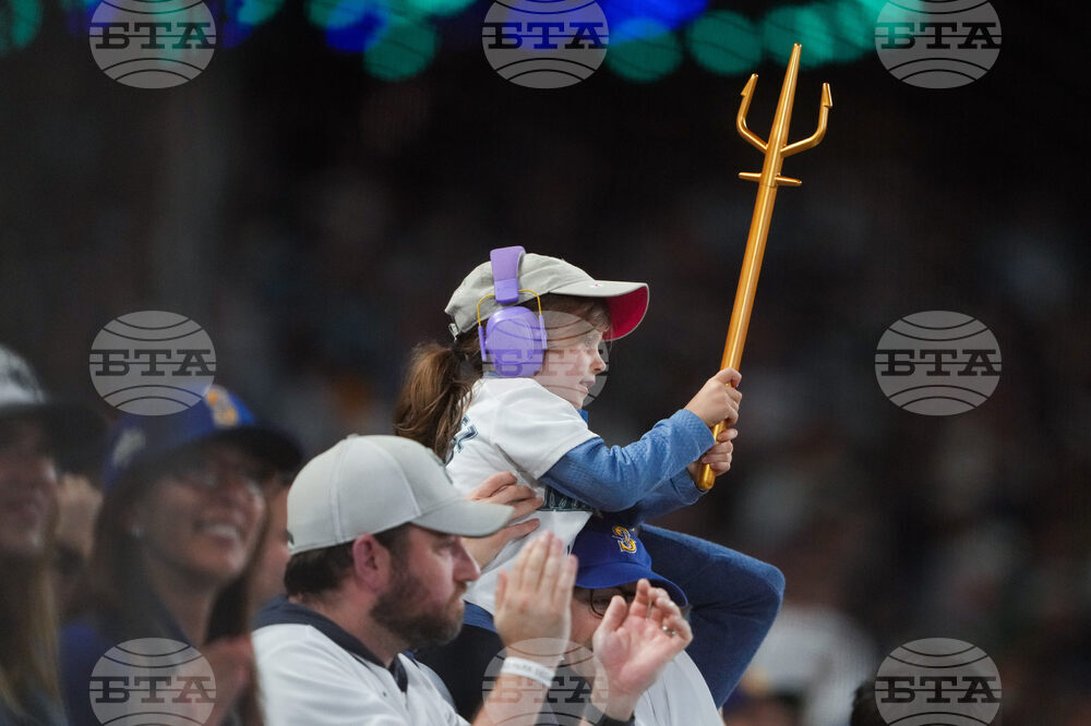 Fans react after Seattle Mariners second baseman Seattle Mariners second baseman Leo Rivas hit an RBI-single during the seventh inning in Game 5 of baseball's American League Division Series against the Detroit Tigers, Friday, Oct. 10, 2025, in Seattle. (AP Photo/Lindsey Wasson)