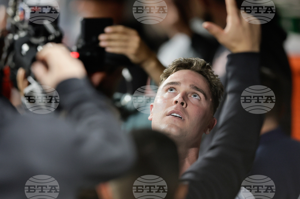 Detroit Tigers right fielder Kerry Carpenter looks up as he reacts in the dugout after hitting a two run home run during the sixth inning in Game 5 of baseball's American League Division Series against the Seattle Mariners, Friday, Oct. 10, 2025, in Seattle. (AP Photo/John Froschauer)