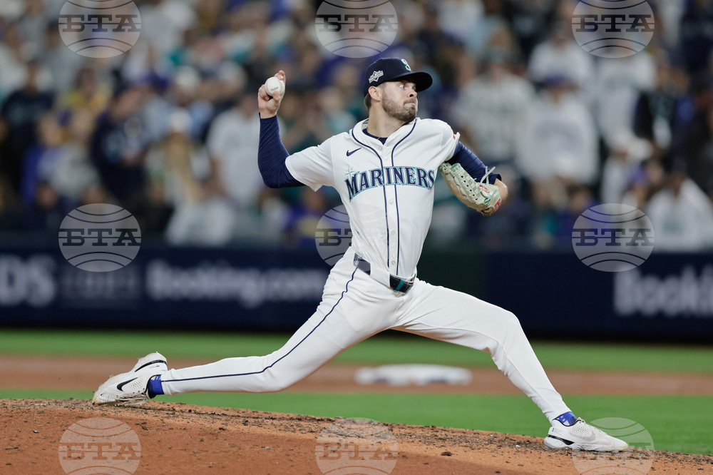 Seattle Mariners pitcher Matt Brash pitches during the seventh inning in Game 5 of baseball's American League Division Series against the Detroit Tigers, Friday, Oct. 10, 2025, in Seattle. (AP Photo/John Froschauer)