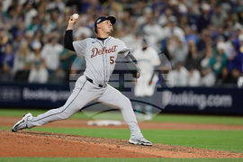 Detroit Tigers pitcher Keider Montero throws in the 11th inning in Game 5 of baseball's American League Division Series against the Seattle Mariners, Friday, Oct. 10, 2025, in Seattle. (AP Photo/John Froschauer)