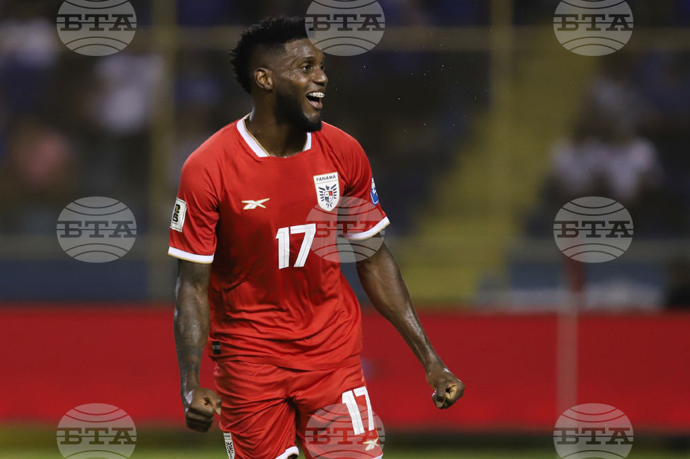 Panama's Jose Fajardo celebrates scoring his side's opening goal against El Salvador during a World Cup 2026 qualifying soccer match at Cuscatlan stadium in San Salvador, El Salvador, Friday, Oct. 10, 2025. (AP Photo/Salvador Melendez)