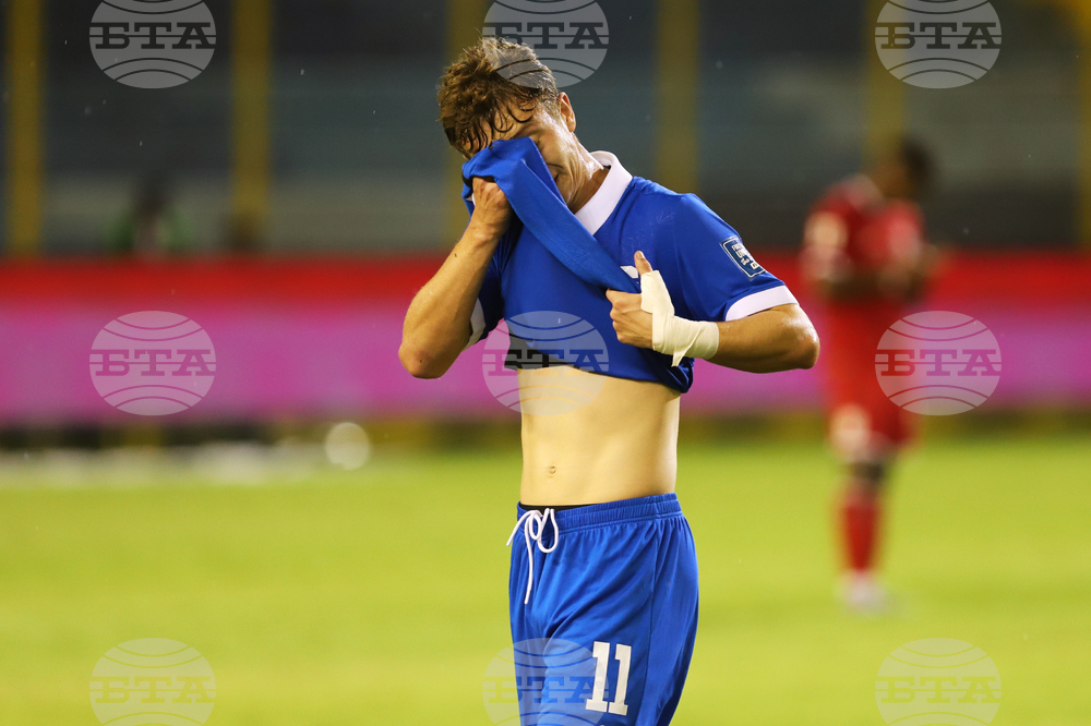 El Salvador's Bryan Gil reacts after scoring a goal that was disallowed on review during a World Cup 2026 qualifying soccer match against Panama at Cuscatlan stadium in San Salvador, El Salvador, Friday, Oct. 10, 2025. (AP Photo/Salvador Melendez)