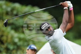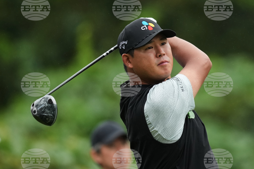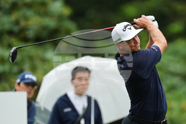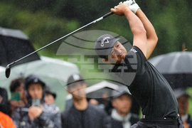 An Byeong-hun, of South Korea, tees off on the second hole during the third round of the Baycurrent Classic golf tournament at the Yokohama Country Club in Yokohama, near Tokyo, Saturday, Oct. 11, 2025. (AP Photo/Hiro Komae)