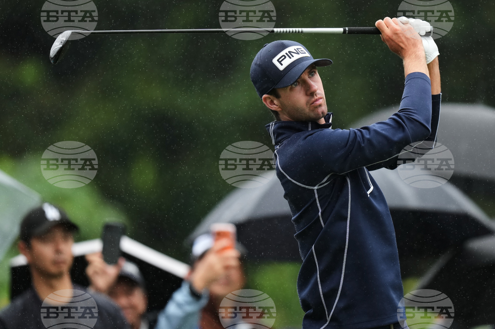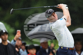 Brian Campbell, of the U.S., tees off on the second hole during the third round of the Baycurrent Classic golf tournament at the Yokohama Country Club in Yokohama, near Tokyo, Saturday, Oct. 11, 2025. (AP Photo/Hiro Komae)