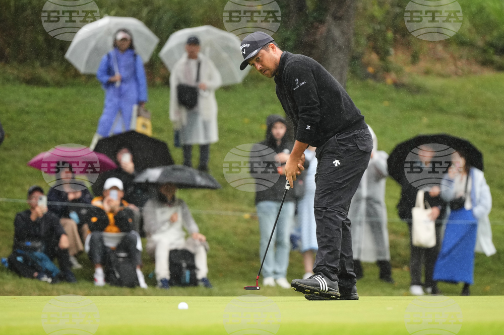 Xander Schauffele, of the U.S., makes a putter shot on the second green during the third round of the Baycurrent Classic golf tournament at the Yokohama Country Club in Yokohama, near Tokyo, Saturday, Oct. 11, 2025. (AP Photo/Hiro Komae)