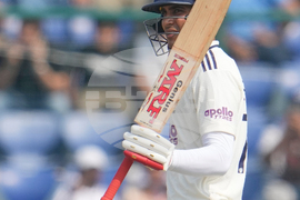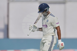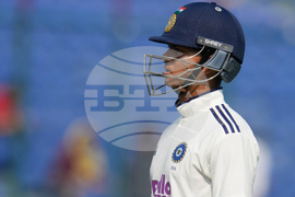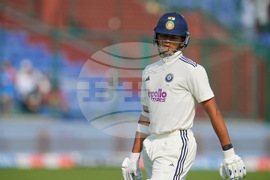 India's Yashasvi Jaiswal walks off the field after losing his wicket on the second day of the second cricket test match between India and West Indies at the Arun Jaitley Stadium in New Delhi, India, Saturday, Oct.11, 2025. (AP Photo/Manish Swarup)