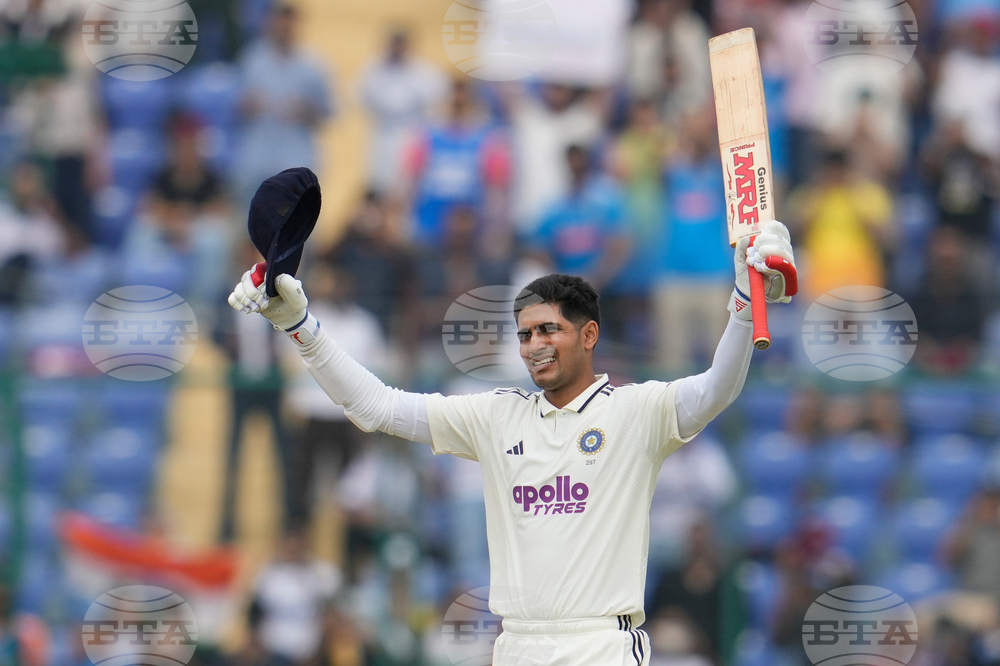 India's captain Shubman Gill celebrates after scoring a century on the second day of the second cricket test match between India and West Indies at the Arun Jaitley Stadium in New Delhi, India, Saturday, Oct.11, 2025. (AP Photo/Manish Swarup)