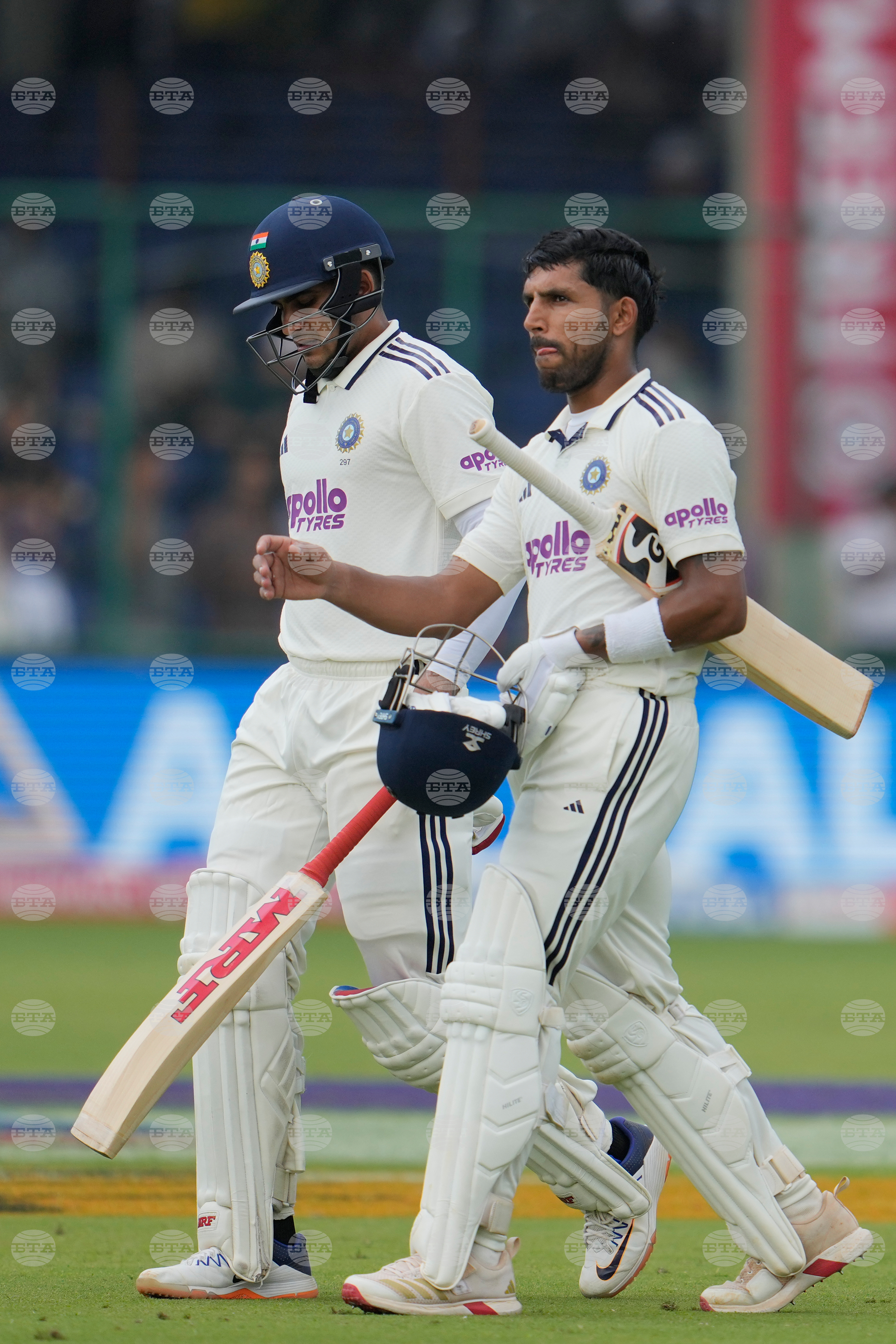 India's Nitish Kumar Reddy walks off the field after losing his wicket on the second day of the second cricket test match between India and West Indies at the Arun Jaitley Stadium in New Delhi, India, Saturday, Oct.11, 2025. (AP Photo/Manish Swarup)