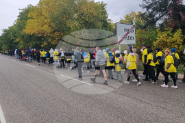 Плевен (11 октомври 2025) Близо 400 участници се включиха в десетото издание на пешеходния поход от Плевен до село Тотлебен, който традиционно преминава под наслова „Да слезем от колите и да повървим пеша“. Началото на маршрута бе при местността "Кожухарската чешма" край Плевен, финалът ще е в центъра на селото. На снимката: кметът на село Тотлебен Емил Гашев.