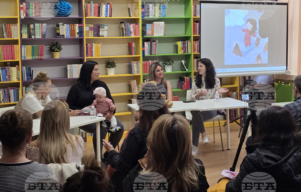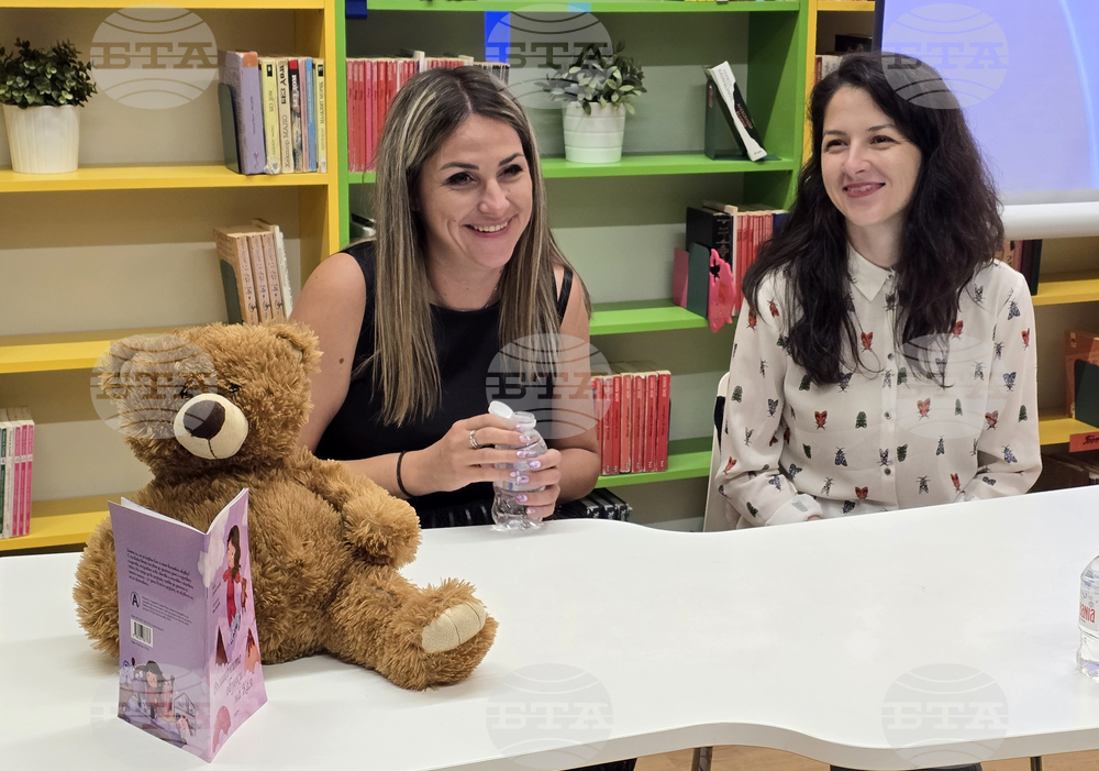 София (11 октомври 2025) Национално издателство за образование и наука „Аз-буки“ представя детската книга „Вълшебните обувки на Кая“ в Детския отдел на Столична библиотека. На снимката: авторът на книгата Диляна Кочева (вляво) и илюстраторът Ина Кьорова.
