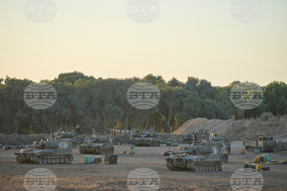 An Israeli mobile artillery unit at a staging area near the border with the Gaza Strip, in southern Israel, Saturday, Oct. 11, 2025, as part of the agreement between Hamas and Israel to pause the war and release the remaining captives. (AP Photo/Ohad Zwigenberg)