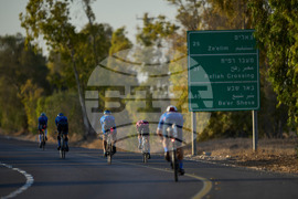 Cyclists are seen in a main road in southern Israel, Saturday, Oct. 11, 2025, as part of the preparations surrounding the expected release of hostages under the agreement between Hamas and Israel to pause the war and free the remaining captives. (AP Photo/Ohad Zwigenberg)
