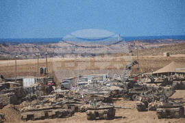 Israeli soldiers work on their tanks at a gathering point on the border with the Gaza Strip, in southern Israel, Saturday, Oct. 11, 2025 after Israel and Hamas have agreed to a pause in their war and the release of the remaining hostages. (AP Photo/Ariel Schalit)