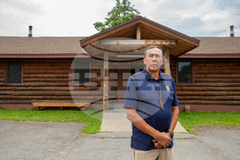 FILE - Tadodaho Sid Hill, takes a break from meetings to pose for a portrait outside of the Onondaga Nation's longhouse, Thursday, Aug. 3, 2023, on the Onondaga Nation territory in central New York. (AP Photo/Lauren Petracca, File)