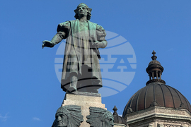 A statue of Christopher Columbus stands in downtown Syracuse, N.Y, Friday, Sept. 5, 2025. (AP Photo/Michael Hill)