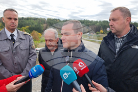 Село Николово (11 октомври 2025) Евакуацията за част от русенското село Николово, въведена преди два дни заради проблем със стената на намиращия се до населеното място язовир, се отменя и се заменя с мярка "повишена готовност за евакуация за 72 часа". На снимката: кметът на община Русе Пенчо Милков (втори отдясно).