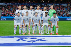 Israeli team poses ahead of the World Cup qualifying soccer match between Norway and Israel in Oslo, Saturday, Oct. 11, 2025. (Jonas Been Henriksen/NTB Scanpix via AP)