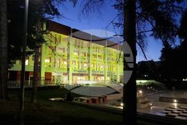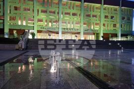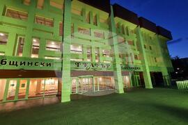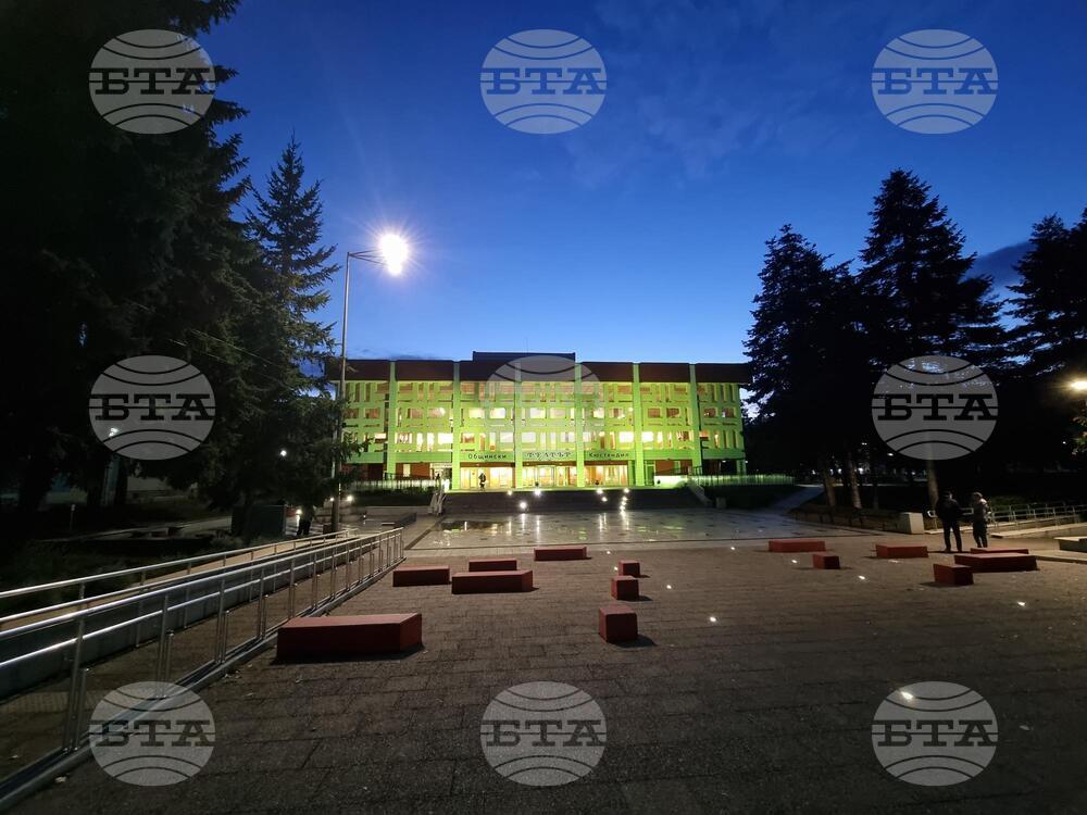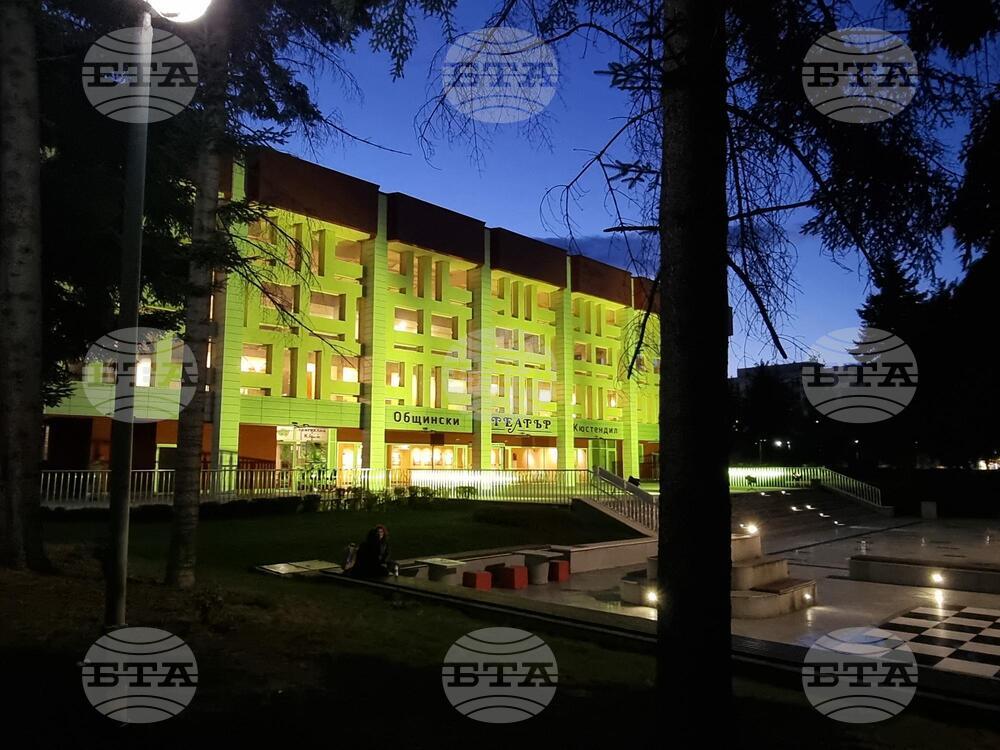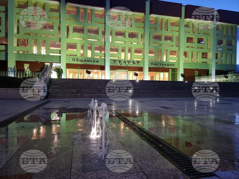 Кюстендил (11 октомври 2025) Фасадата на Общинският театър в Кюстендил светна в зелено по повод Европейският ден на донорството и трансплантацията.