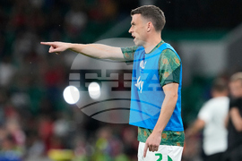 James Dunne of Ireland warms up prior to a World Cup 2026 group F qualifying soccer match against Portugal in Lisbon, Saturday, Oct. 11, 2025. (AP Photo/Armando Franca)