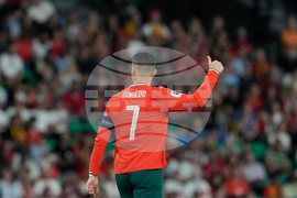 Cristiano Ronaldo of Portugal thumbs up during a World Cup 2026 group F qualifying soccer match between Portugal and Ireland in Lisbon, Saturday, Oct. 11, 2025. (AP Photo/Armando Franca)