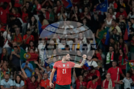 Ruben Neves of Portugal celebrates after scoring the opening goal against Ireland during a World Cup 2026 group F qualifying soccer match between Portugal and Ireland in Lisbon, Saturday, Oct. 11, 2025. (AP Photo/Armando Franca)