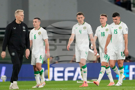 Ireland's players react after a World Cup 2026 group F qualifying soccer match between Portugal and Ireland in Lisbon, Saturday, Oct. 11, 2025. (AP Photo/Armando Franca)