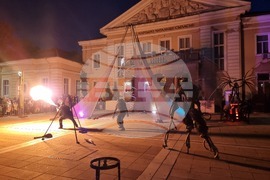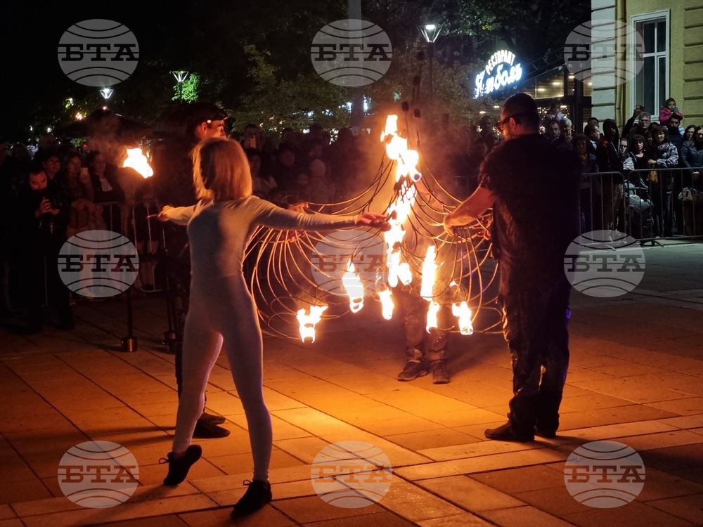 Ямбол (11 октомври 2025) Огнени спектакли озариха централната градска част на Ямбол за втора поредна вечер с уличния фестивал 6Fest. Трите спектакъла се представиха на публиката със зрелищни визуални ефекти, мистична музика и акробатични изпълнения.