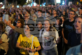 People take part in a rally in support of hostages kidnapped by Hamas, at a plaza known as hostages square, in Tel Aviv, Israel, Saturday, Oct. 11, 2025, ahead of the expected release of the hostages held in the Gaza Strip. (AP Photo/Emilio Morenatti)