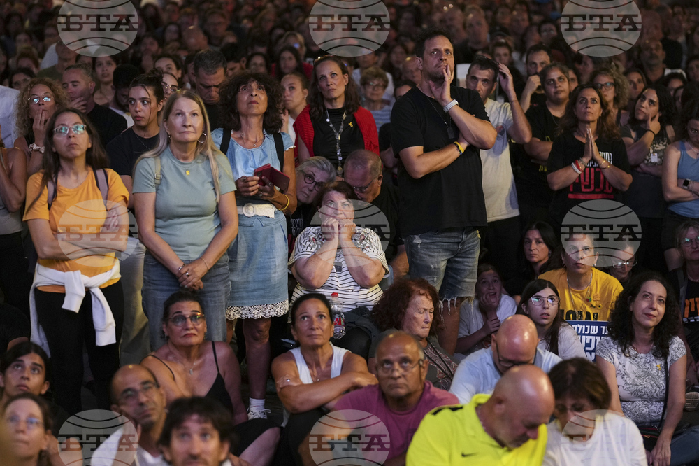 People take part in a rally in support of hostages kidnapped by Hamas, at a plaza known as hostages square, in Tel Aviv, Israel, Saturday, Oct. 11, 2025, ahead of the expected release of the hostages held in the Gaza Strip (AP Photo/Francisco Seco)