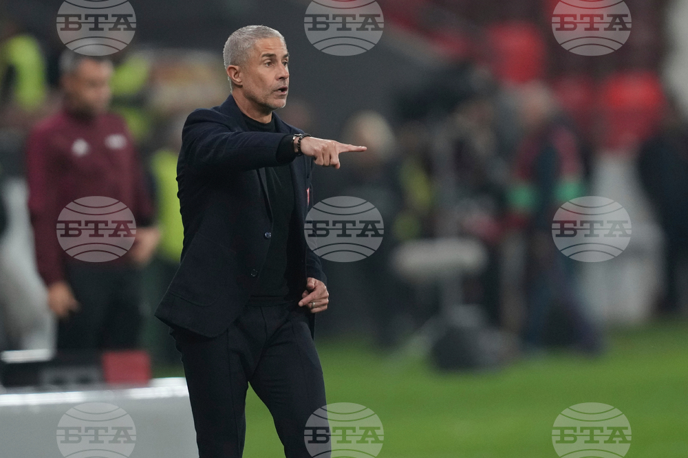 Albania coach Sylvinho looks from the bench before the World Cup Group K qualifying soccer match between Serbia and Albania, at the Dubocica Stadium in Leskovac, Serbia, Saturday, Oct. 11, 2025. (AP Photo/Darko Vojinovic)