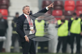 Serbia's head coach Dragan Stojkovic reacts during the World Cup Group K qualifying soccer match between Serbia and Albania, at the Dubocica Stadium in Leskovac, Serbia, Saturday, Oct. 11, 2025. (AP Photo/Darko Vojinovic)