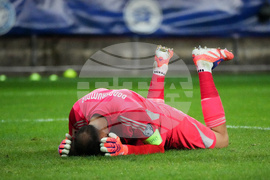 Italy's goalkeeper Gianluigi Donnarumma reacts after conceding a goal during a World Cup 2026 group I qualifying soccer match between Estonia and Italy in Tallinn, Estonia, Saturday, Oct. 11, 2025. (AP Photo/Sergei Grits)