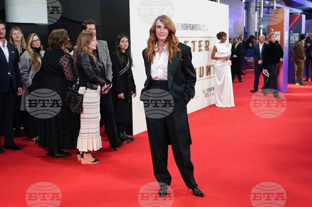 Julia Roberts poses for photographers upon arrival at the premiere of the film "After The Hunt" during the London film festival, in London, Saturday, Oct. 11, 2025. (Photo by Alberto Pezzali/Invision/AP)
