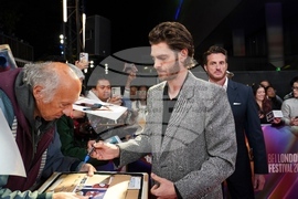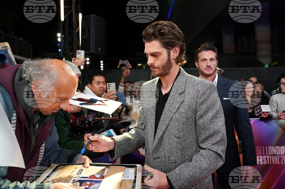 Andrew Garfield signs autographs for fans upon arrival at the premiere of the film "After The Hunt" during the London film festival, in London, Saturday, Oct. 11, 2025. (Photo by Alberto Pezzali/Invision/AP)