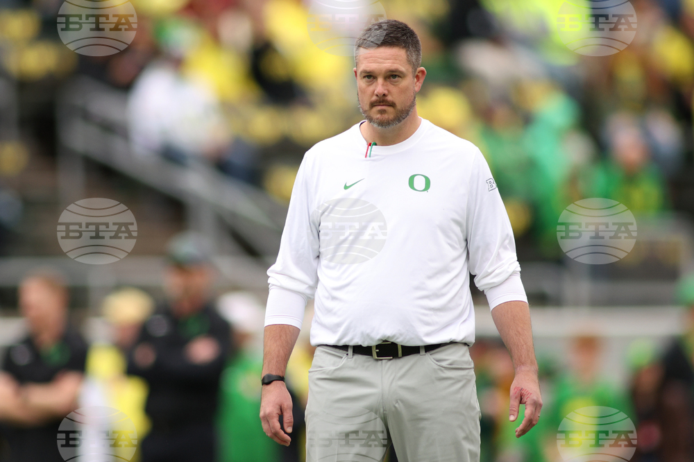 Oregon head coach Dan Lanning watches warm ups before an NCAA college football game against Indiana, Saturday, Oct. 11, 2025, in Eugene, Ore. (AP Photo/Lydia Ely)