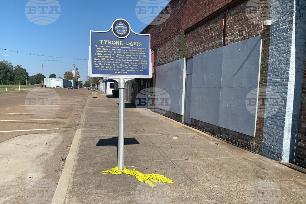 The street remains empty at the scene of Fridays deadly shooting in downtown Leland, Miss.,on Saturday, Oct. 11, 2025. (AP Photo/Katie Adkins)