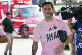 Inter Miami's Lionel Messi arrives for an MLS soccer match against Atlanta United, Saturday, Oct. 11, 2025, in Fort Lauderdale, Fla. (AP Photo/Lynne Sladky)